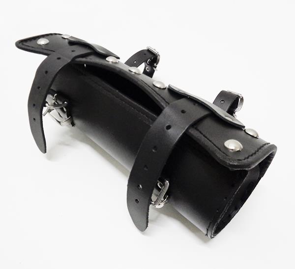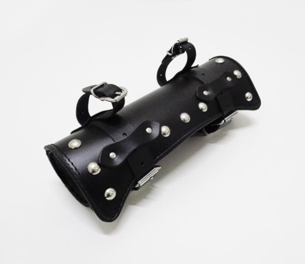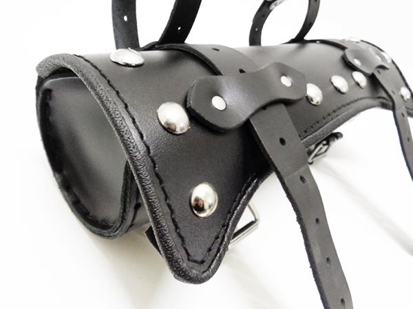 PIÓRNIK WYKONANY ZE SKÓRY BYDLĘCEJ O GRUBOŚCI 2 mm, OZOBIONY SREBRNYMI PUKLAMI
